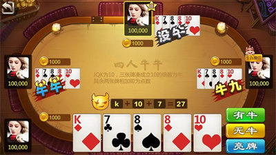 3、精彩在线呈现,各大玩家展现各种牛牛技巧,绝对好玩。