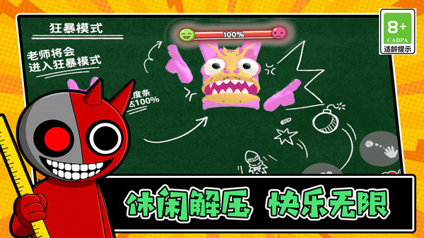 1、独创情绪值系统,用恶作剧道具精准打击教师痛点,当愤怒值突破临界点,看外星表皮如何层层剥落。